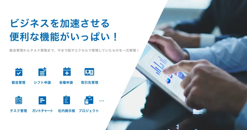 β版では勤怠管理からタスク管理まで、企業のコア部分のマストな機能を先行してご提供します。