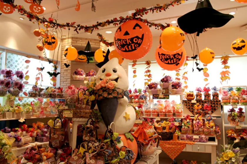 黒いシックな壁にオレンジの看板が印象的なblueberry三島店。外観と異なり華やかな店内では、定番人気の「ポニョポニョ」をはじめ、旬のフルーツをふんだんに使ったシェフの創作ケーキや焼き菓子ギフトを豊富に取り揃えています。