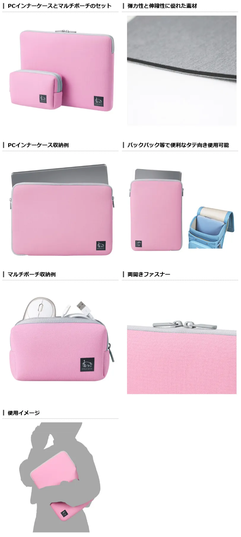 ハクバ写真産業株式会社(本社:東京都墨田区)は、北欧のトナカイをイメージしたブランド「Chululu(チュルル)」より、バックパックやランドセルで便利なタテ向き使用ができ、弾力性と伸縮性に優れた素材を採用した「PCインナーケース 11.6インチ&マルチポーチ」4色を発売いたします。