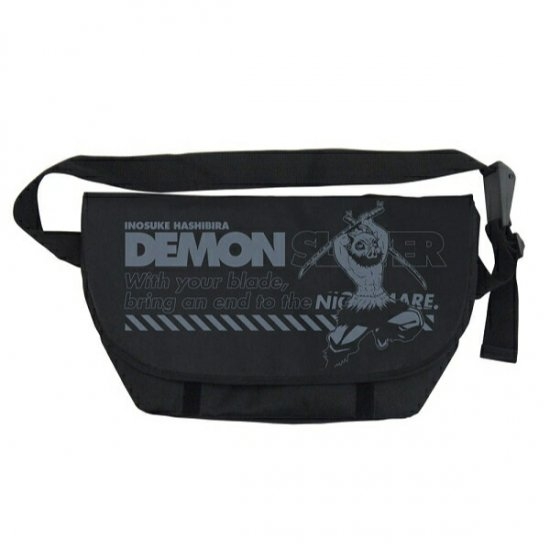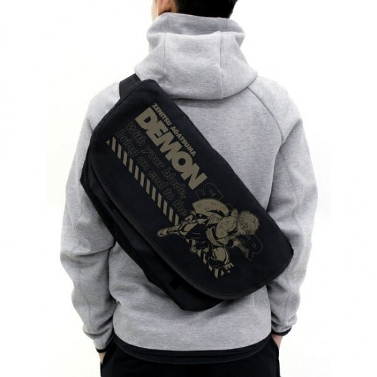 ブラックに善逸のイラストやDEMONの文字がクールな、メッセンジャーバッグです。