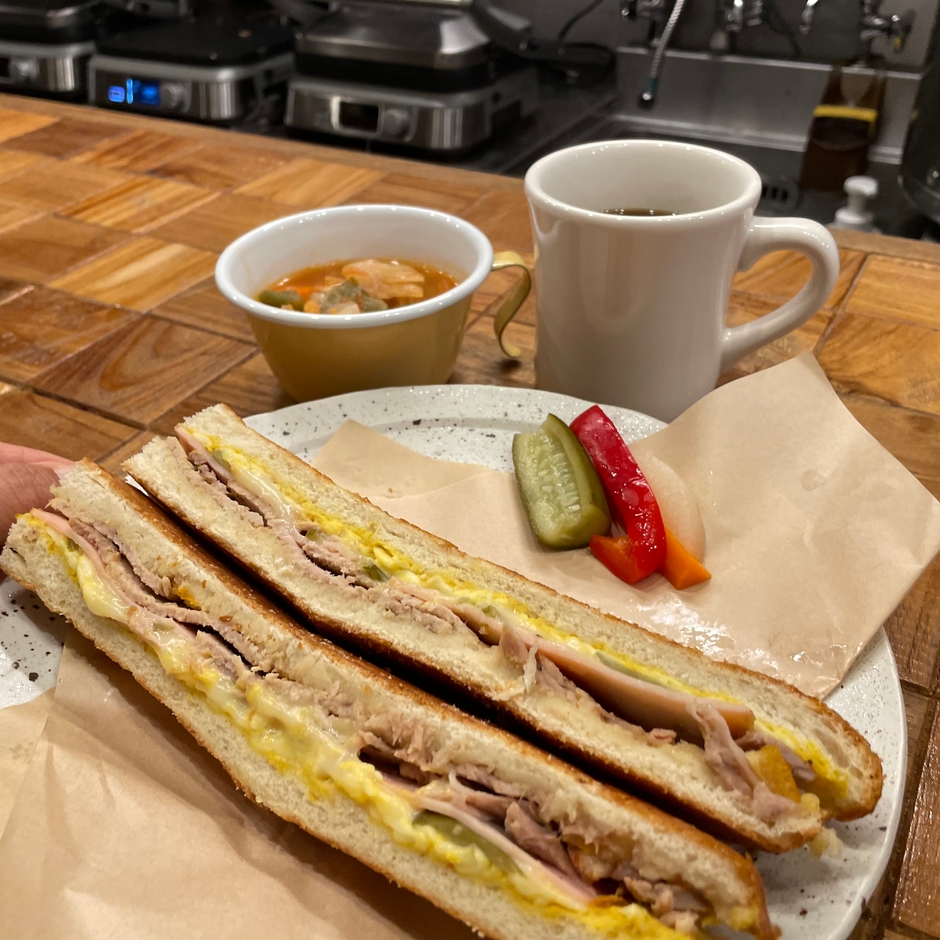 カリッと焼き上がったキューバサンドとキューバ豆コーヒー、そして店主の笑顔で皆さまをお待ちしております。