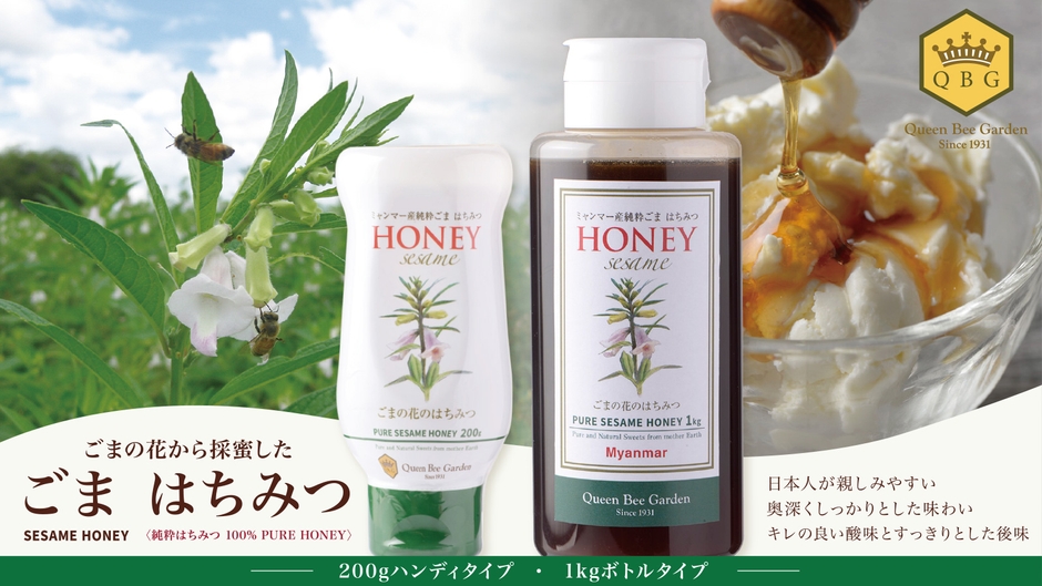 今年創業90年の天然甘味料専門メーカー 株式会社クインビーガーデン(本社:静岡県静岡市、代表取締役社長:青木 均)は、限られた季節にしか咲かない〈ごまの花〉から採蜜された「QBGごまはちみつ」を、200gと1kgの2サイズで新発売いたします。