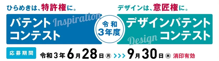 令和3年度 パテントコンテスト/デザインパテントコンテスト 応募締切まで残り1カ月!9月30日まで募集