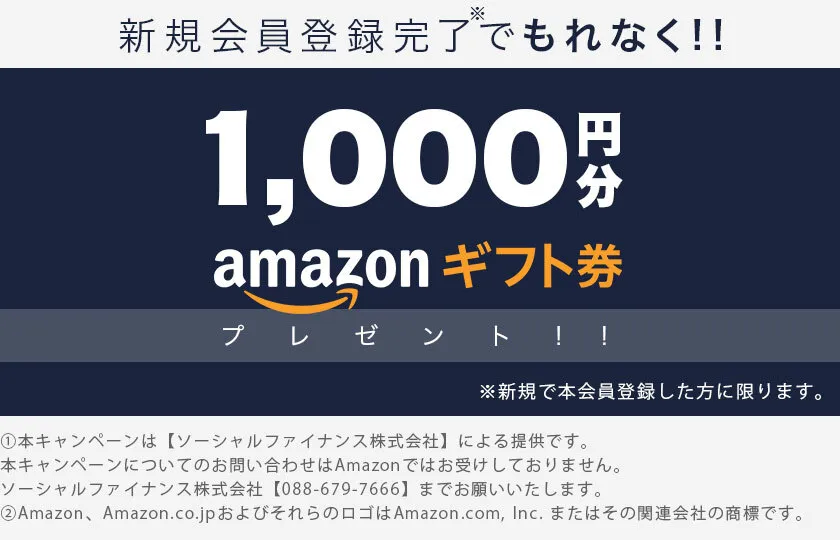 10月7日までに新規会員登録完了された方に、もれなくAmazonギフト券1,000円分をプレゼントいたします!