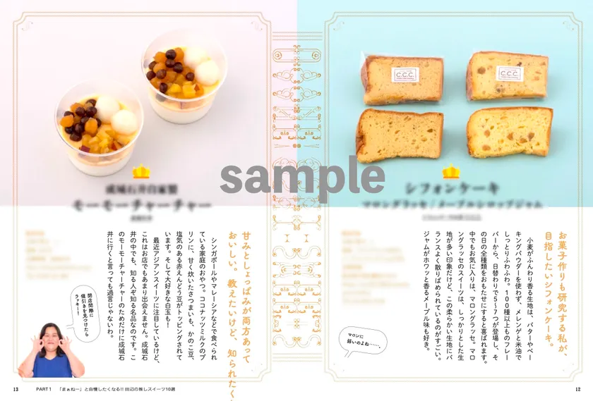 これまで数々食べ歩き、時には自作するほど研究に余念がない田辺さんが、忘れられないスイーツばかりを厳選。最愛の焼き菓子をはじめ、和菓子、フルーツのスイーツ、チョコレートなど、お世辞抜きで「あんた、食べてみな!」と言いたい92品を1冊に。