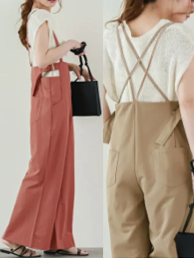 ウエスト脇のベルトデザインと細めのバックストラップがWクロス仕様で360度抜かりなしのサロペット。程よい光沢と柔らかな落ち感のある素材が歩くたびに優雅なシルエットを演出して、カジュアルになり過ぎず上品に着こなせます。長さ調節可能なアジャスター付きなので、身長を気にせずトライできそうなお洒落アイテム。色違いで揃えたくなるテラコッタやベージュなどの旬のカラー展開で、さりげない個性が光る秋のサロペットコーデを楽しみたくなること間違いなしです。