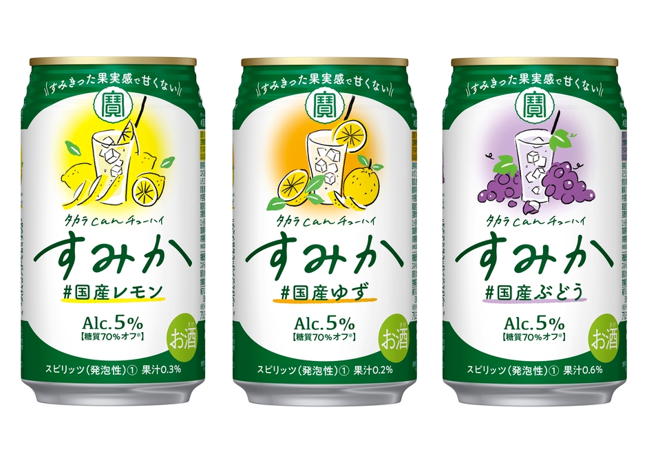 宝酒造株式会社は、“タカラcanチューハイ「すみか」<#国産レモン>”、“同<#国産ゆず>”、“同<#国産ぶどう>”を9月28日(火)に全国で新発売します。同商品には、当社として初めて純アルコール量を表示します。