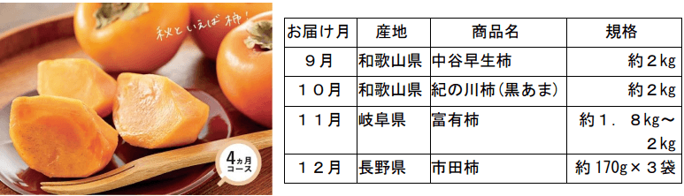 〇秋の味覚といえばやっぱり柿! 4ヵ月コース 各月4,280円(税/送料込)