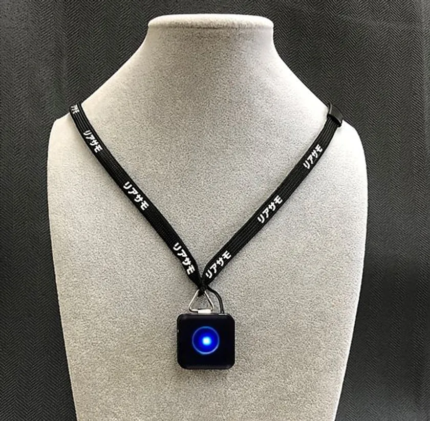 『リアサモ』の仕組みは、袋織りストラップに内蔵した温度測定センサーで首の後ろの表面温度を感知し3色のLEDで現在の状態を第三者に開示。低温時や装着し始めは青色、平常である場合は緑色、一定値以上の温度を感知した場合は赤色のLEDが点滅するようになっています。