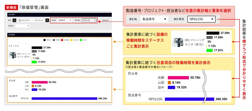 この度の機能拡充では、取得データの活用領域を広げるとともに、現場でのタイムリーかつ高精度な原価管理を実現し、製造業のデジタル改革(DX)を支援します。