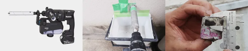 既設コンクリートへの雨水や空気・炭酸ガスの侵入などによる中性化の進行度合を調査します。これにより、コンクリート躯体の中性化進行状況を確認します。