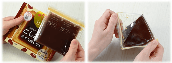 『スライスこしあん』は、包装フィルムを手でめくってのせて焼くだけで手軽に楽しめる商品です。あんこが食パンサイズにぴったり合う、薄型のシート状に成形されております。また、トーストだけでなく型で抜いたり、溶かしたり、幅広い用途に使用できる商品として認知拡大が急速に進んでいます。