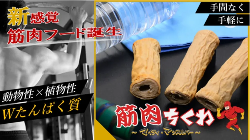 手軽にWたんぱく質!「筋肉ちくわ マイティ・マッスルバー」 9月7日に一般販売開始! ~Makuakeで目標率150%達成&予約販売数1,500本を記録~