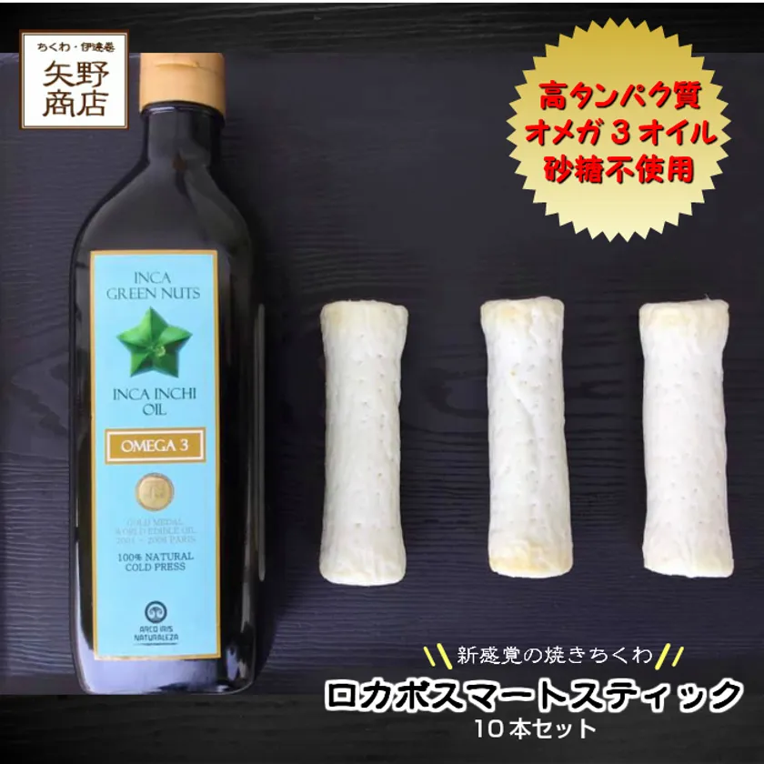 「筋肉ちくわ」はたんぱく質を多く含んでいるのにくらべ、「ロカボスマートスティック」は名前の通り低糖質にこだわった砂糖不使用の焼ちくわです。たんぱく質に加え、日本人に不足しがちなオメガ3系オイル(インカインチオイル)を配合しているので、お魚不足が気になる方におすすめです。普通のちくわより柔らかく、食べやすいと好評で、そのままで美味しいですが、料理の食材としてのアレンジもおすすめです。「ロカボスマートスティック」も絶賛発売中、1本でたんぱく質10.5g、オメガ3系オイル1日分が手軽にとれて、しかも砂糖不使用、保存料、着色料を使ってないので、お子様からお年寄りまで安心してお召し上がりいただけます。
