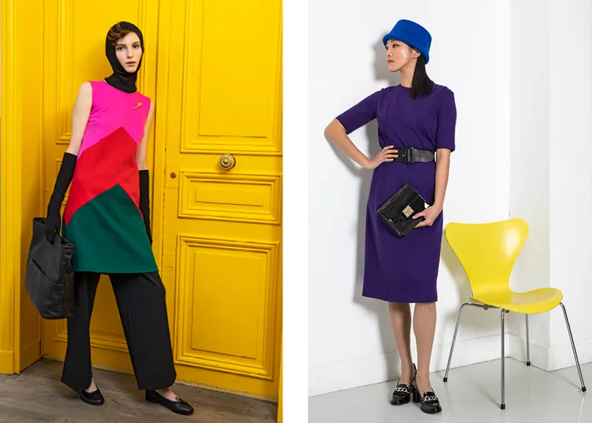 9月はカラーバリエーション豊かなニットやアウターを中心としたプレイフルなコレクション。プラムやテラコッタ、ピーコックカラーのトーン オン トーンのスタイリングを、レトロなミニスカートやドレスで主役気分の着こなしを楽しんで。