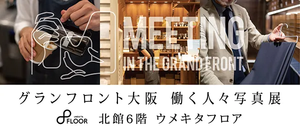 グランフロント大阪北館6階ウメキタフロアにて9/10(金)~10/31(日)(予定)まで「MEETING IN THE GRAND FRONT~グランフロント大阪 働く人々写真展~」を開催いたします。