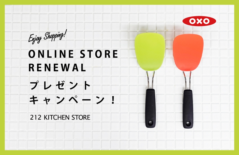 参加条件:オンラインストアにて5,500円(税込)以上お買い上げのお客様に、人気キッチンブランド "OXO(オクソー)" のナイロンソフトターナーをプレゼント!(先着60名様)