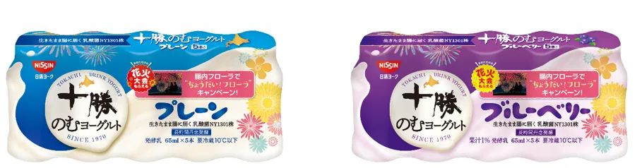 「十勝のむヨーグルト 65ml×5」「同 65ml×6 (1本増量パック)」 (プレーン、ブルーベリー)