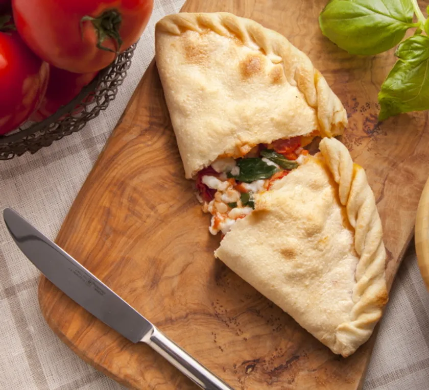 カルツォーネ(calzone)とは、イタリアが生んだ「包みピザ」半月型のピザ。