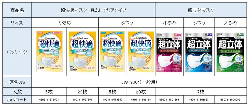 ユニ・チャーム 一般流通用 『超快適マスク』『超立体マスク』、「日本産業規格(JIS T9001)」適合番号を取得