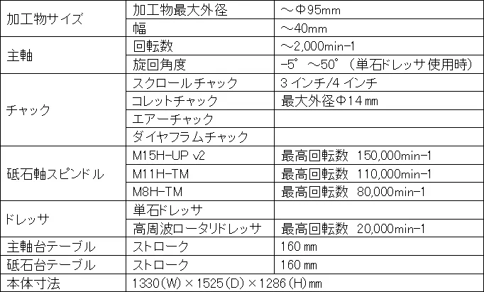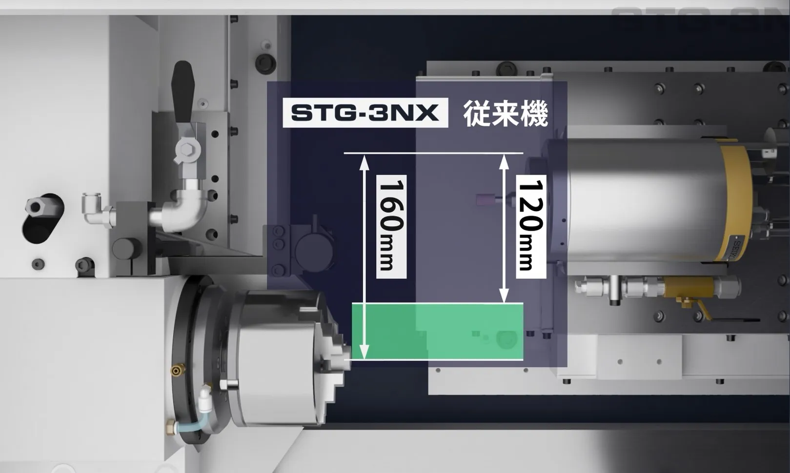今回、販売を開始する「STG-3NX」は、2009年の発売以来、好評を博しております3インチ/4インチチャック搭載の小型内面研削盤「STG-3N」の後継モデルで、長所である省スペース、高剛性・低重心構造はそのまま踏襲する一方で、主軸台テーブルのストロークを延長することにより、機内スペースを拡げ、ワーク脱着や機上測定などの作業性を向上させました。また、高出力・高剛性な自社開発高周波スピンドル「Hシリーズ」を搭載し、高精度・高能率な加工でお客様の生産性の向上に貢献いたします。