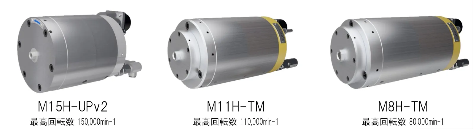 高出力、高剛性はもとより、低環境負荷、静音化を追及した新型高周波スピンドル 「Hシリーズ」 を搭載。用途に応じて以下より選択可能です。