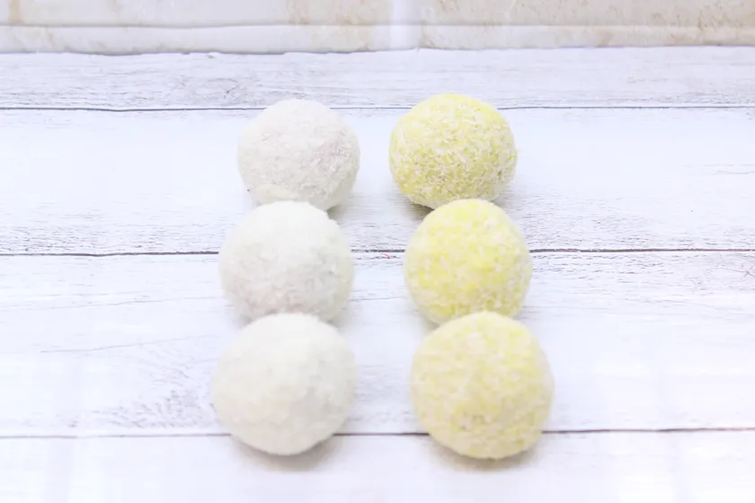 お月見団子に見立てた、コロコロドーナツはココナッツたっぷり。