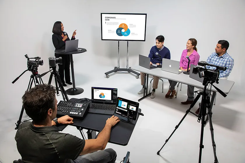 『AeroCaster Switcher』は、iOS/Androidのスマートフォンやタブレットなど最大4台までワイヤレス接続可能。iPad本体のカメラ映像も追加でき、合計5つの映像入力から選択して使用できます。また、ローランドのビデオ・スイッチャーで好評な映像合成、静止画追加などの映像エフェクト機能を搭載。ワイヤレス接続の利点を活かした自由なカメラワークで、ライブ・コマース、オンライン学習、パネルディスカッションなど、さまざまなライブ配信やイベントの現場でご使用いただけます。