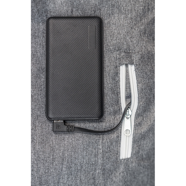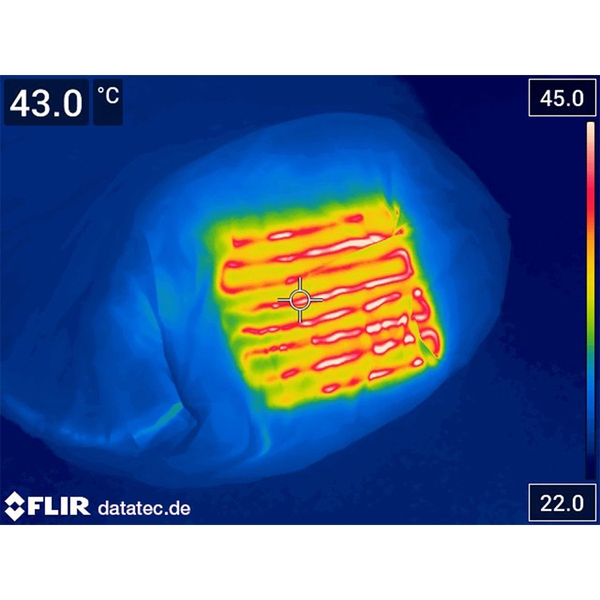 発熱体はオーストリアに本社を置く、ヒーティングユニットの専門メーカーであるアルペンヒート社のユニットを使用。USBコードをモバイルバッテリーに繋ぐだけで暖まり始めます。5,000mAhで約1.8時間。10,000mAhで約3.6時間使用できますが、約30分程度で十分に暖まります。