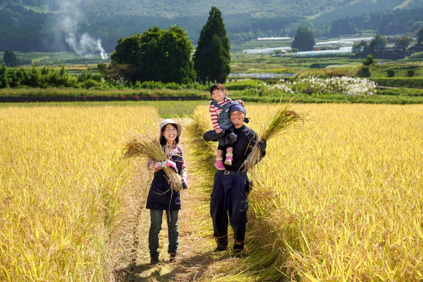 生産者のご家族でしょうか。収穫した稲穂を手に満面の笑みを浮かべている姿に見ているこちらも自然と笑みがこぼれます。作者の巧みな話術と信頼関係の賜物でしょうが、周辺環境の捉え方含め画面構成力が素晴らしいですね。「人を通じてその土地の魅力を知る」のは観光の原点かもしれません。
