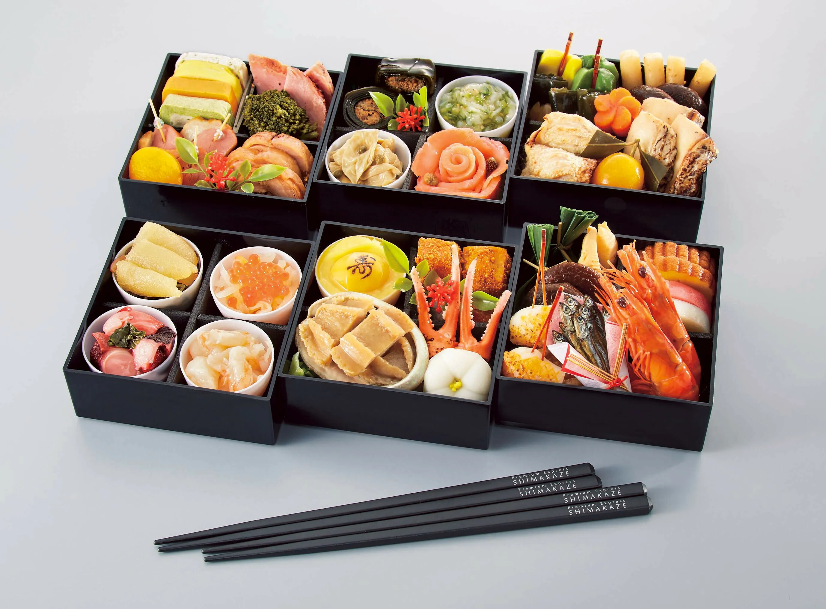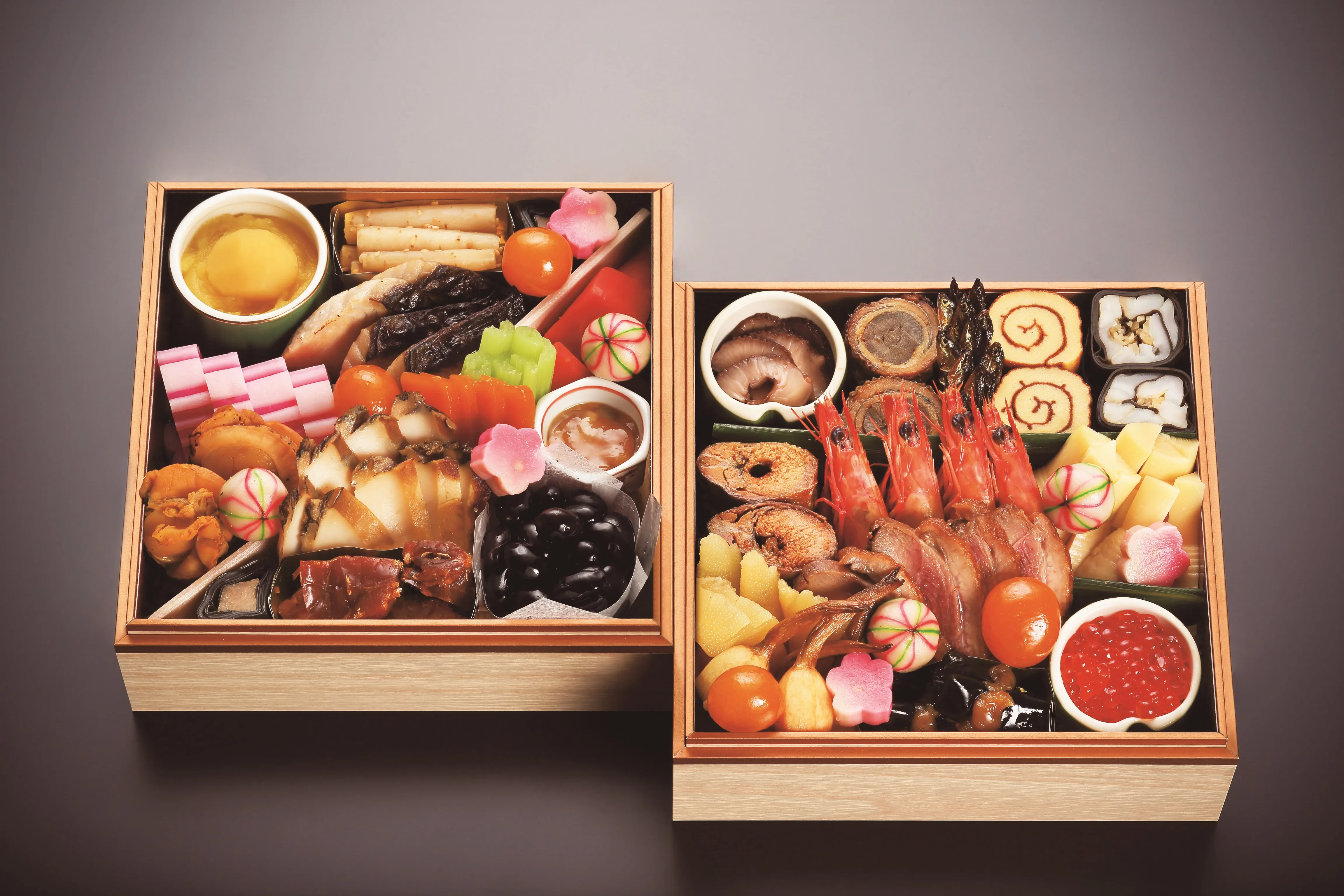 世界初の完全養殖に成功した「近大マグロ」などの海産物をはじめ、農学部の実習で収穫したサツマイモや、学生サークル「GAVRi」が今回のおせちのために育てたごぼうなど、16種類の近大プロデュースの素材を使用し、ハレの日にふさわしいおせち料理に仕上げました。
