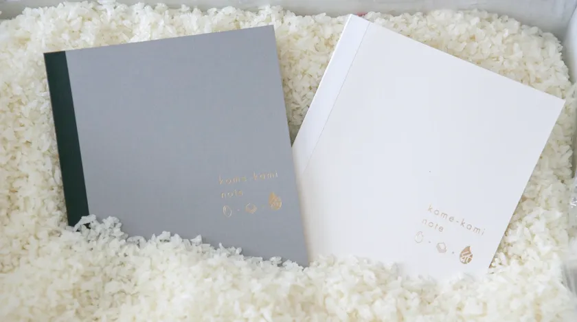 ■廃棄米を活用した「kome-kami(コメカミ)ノート」