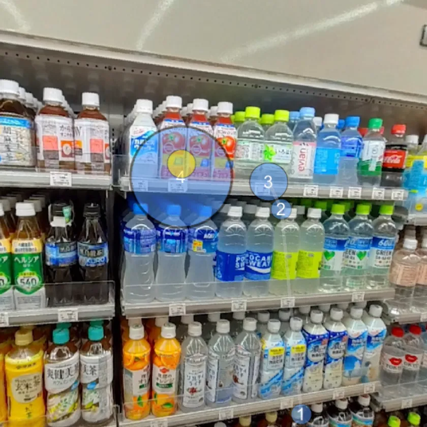 視線プロットはユーザーが視線を向けた順番を可視化します。例えば、安全確認を行う際の指さし確認や、製造業で熟練者が注意を向けるポイントの可視化など、見た順番に意味があるシーンにおける分析にご活用いただけます。