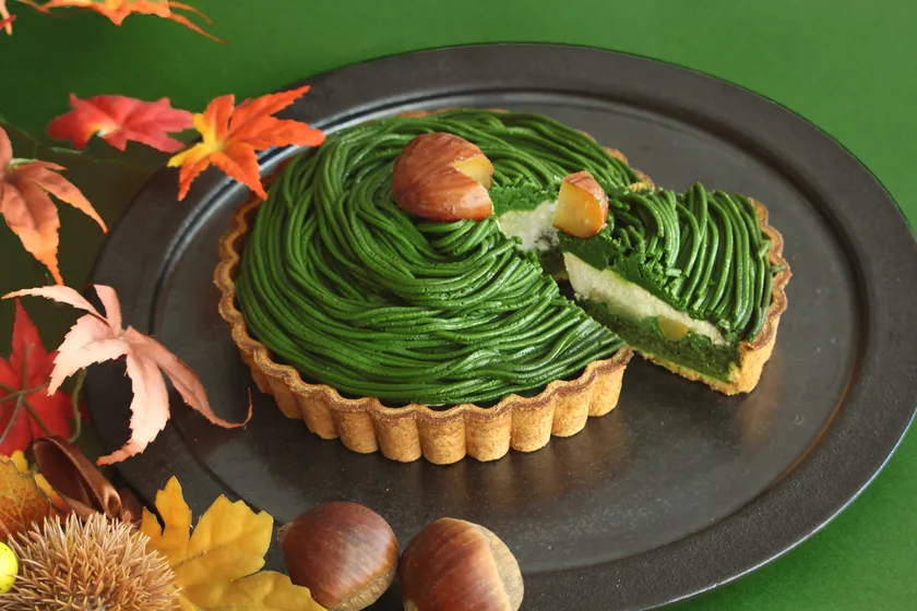 抹茶ファンも栗ファンも、どちらにもおすすめの秋にふさわしいモンブランケーキです。