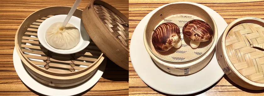 左:ストロー小籠包「海王湯包」と右:フェイク椎茸「椎茸まんじゅう」