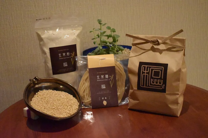今年収穫されたばかりの玄米やオリジナル玄米麺を