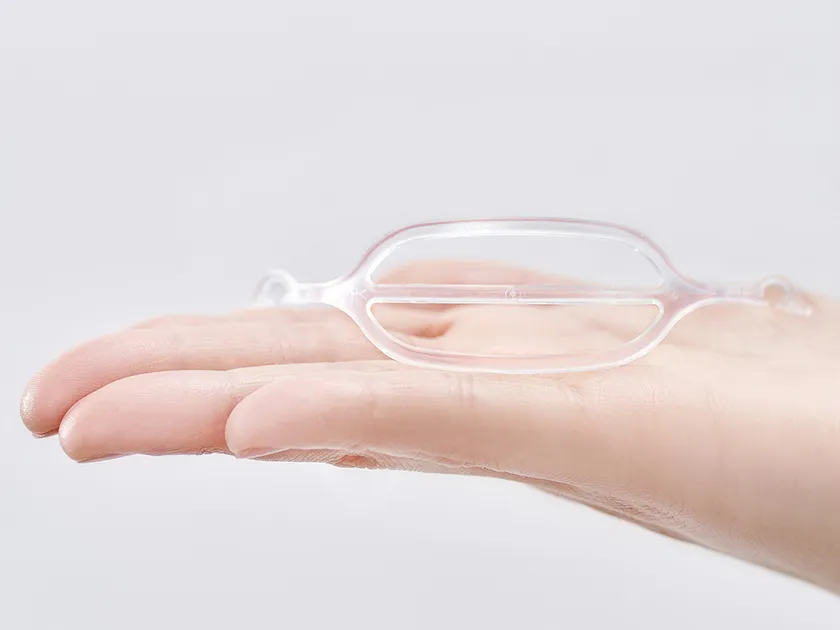 長時間のマスク生活で息苦しい、蒸れる、マスク内がビチャビチャ、化粧が落ちる、メガネが曇る、かぶれ・肌荒れなど多くの方がマスクする生活で悩んでいる現状があります。これらを解決すべく株式会社鳥越樹脂工業 代表の鳥越氏は、マスク内に空間を維持できれば、マスクに関する悩みの多くが改善へ向かうことに着目。自動車部品製造で培った緻密な技術を応用し、軽量かつ安全で丈夫な構造のマスクフレームを考案し、軽量かつ肌に触れないマスクフレームが完成しました。(特許申請済/意匠登録申請済)