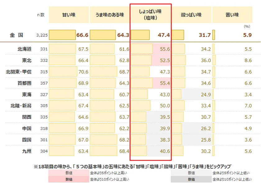 【調査結果1】好きな味として地域差が目立ったのは「しょっぱい味(塩味)」