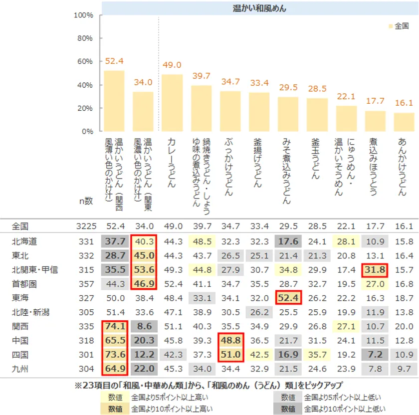【調査結果3】「温かい和風の麺類」は、メニューの好みが地域で様々