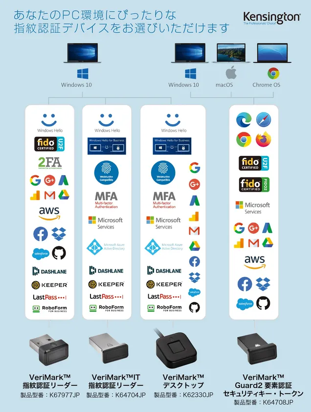 指紋による2要素認証(MFA:Multi Factor Authentication) 及び2段階認証ログインでセキュリティを強化する KensingtonのVeriMark(TM)指紋認証シリーズを発売