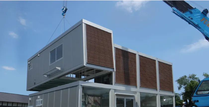 モバイルスペースとは、工場で生産した箱状のフレームを、現場で連結するだけの簡単作業によって建設できる製品です。