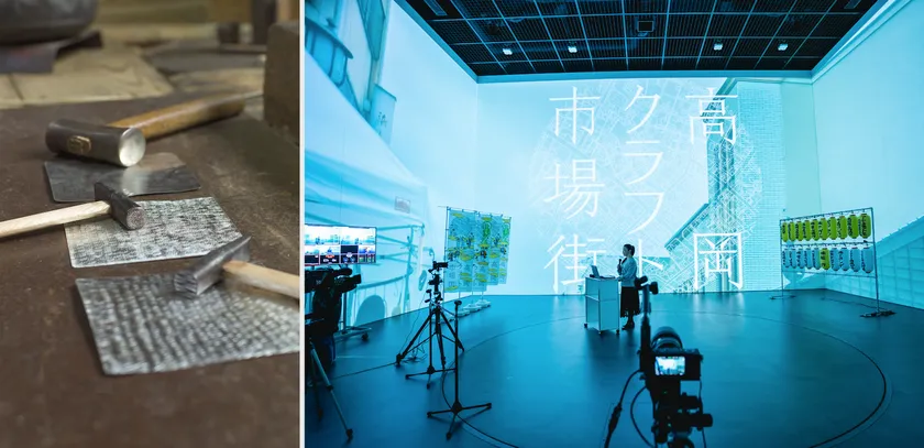 高岡市が2019年度から取り組んでいる、伝統産業の工房とクリエイターの出会いによって日本の手わざの新たな価値創造と関係人口作りを目指す事業「Creators Meet TAKAOKA(クリエイターズ・ミート・タカオカ)」。2020年には高岡の鋳造技術を生かしたプロダクト、新素材と漆の組み合わせによるアクセサリー、仏具のおりんの音を使ったアンビエント音楽などが開発されました。市場街ではこれらのプロダクトを、国の重要文化財に指定されている土蔵造りの商家「菅野家」を会場に展示します。