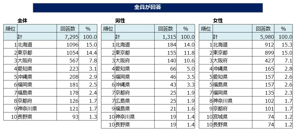・「もし、またオリンピック・パラリンピックの開催が決まった場合、どちらの地域で開催してほしいですか」を伺うと、男女ともに1位「北海道」、2位「東京都」、3位「大阪府」となりました。