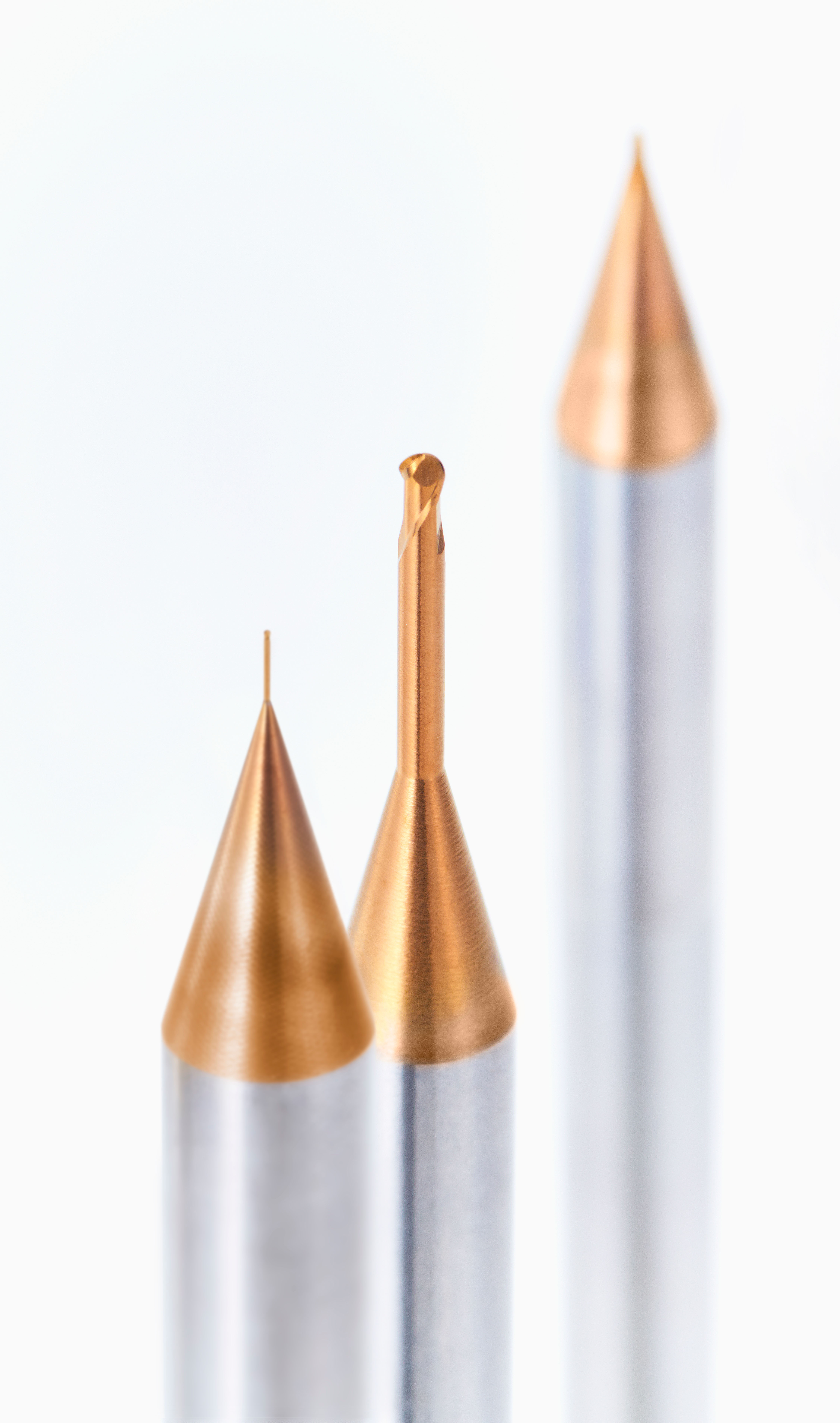 エンドミルは、外周と底部に複数の切れ刃があり、工具が回転、移動しながら金属表面に溝やくぼみ等の加工を行う工具で、自動車や航空機、産業機械など、さまざまな産業で使用されています。これらの生産現場では、多種多様な被削材・加工用途への対応に加え、生産性の向上を図るため、高精度かつ高性能で長寿命な加工工具が求められています。特にボールエンドミルはエンドミルの一種で、先端を球状にすることによってR面や球面など、より複雑な三次元曲面の切削加工に用いられます。