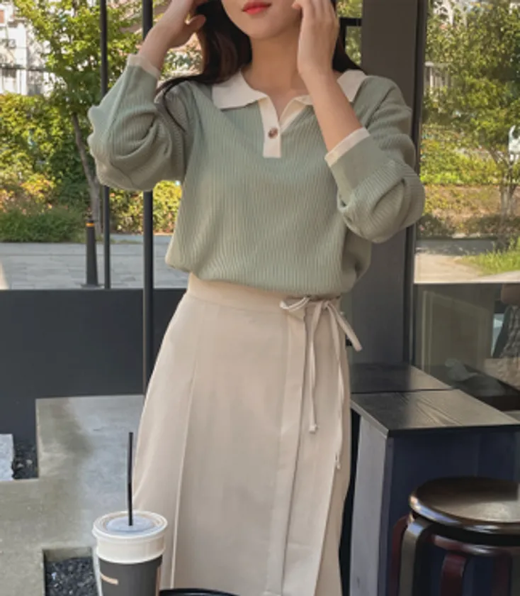 CHERRYKOKOで人気商品となっている「ニューオープニングバイカラーニット」。レトロ感のあるお洒落なデザインで、今秋にブラウンが追加され黒、ミントと合わせ3色展開に。コートやジャケット、ダウンなどと相性ばっちりなので冬まで長く使えるニットトップスです。