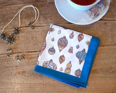 ガラスや陶磁器などのキラキラ輝くオーナメントをいっぱいにちりばめた、豪華な柄です。