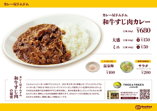 2021年8月に東京・新橋にドムドムハンバーガーの新ブランドとしてオープンした「TREE&TREE’s (ツリーアンドツリーズ)」では、和牛100%のパティを手切りで作っております。その仕込み段階で出る端材の「牛すじ肉」を活用したくドムドムバーガーは模索をしておりました。