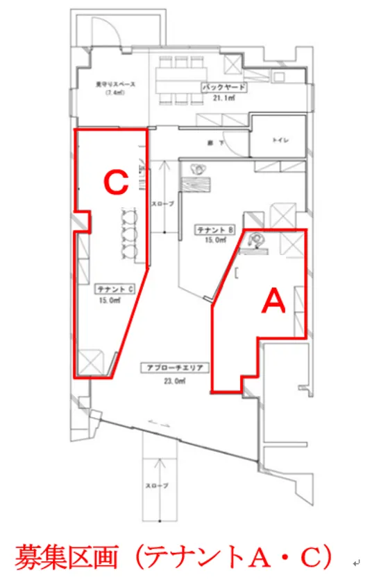 <所在地及び店内レイアウト・募集区画>