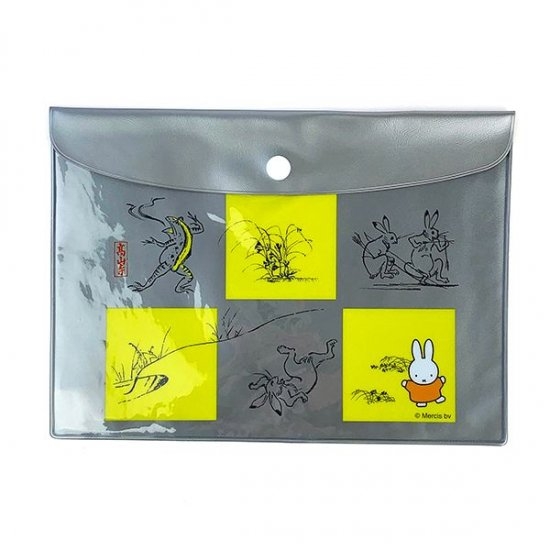 A5サイズのフラットポーチに、ミッフィー×鳥獣戯画のデザインが登場です。