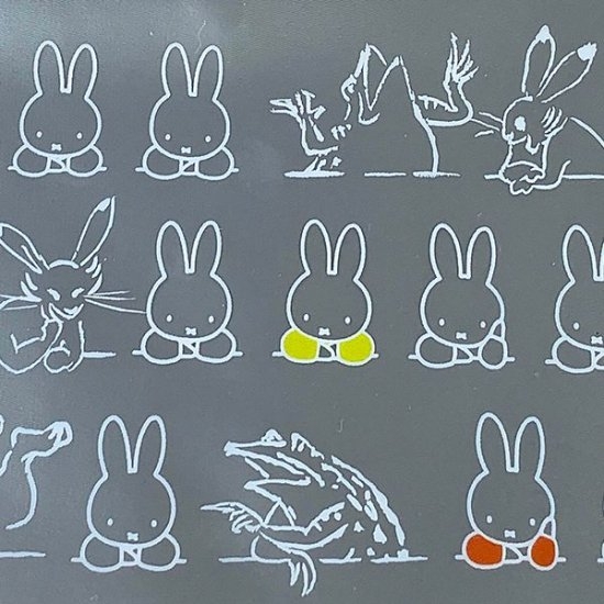 こちらは、ウサギとミッフィーが何やら談笑しているのでしょうか。なぜか違和感がないのが不思議なのですが、ミッフィーのシンプルさが際立ってかわいいですよね。